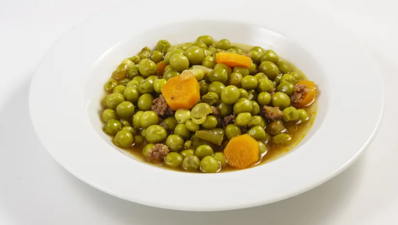 Bezelye ve etler yumuşayıp suyunu çektiğinde ocaktan alın. Servis